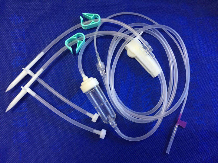 一般由靜脈針、護帽、魯爾接頭、輸液軟管、藥液過濾器、流速調(diào)節(jié)器、滴壺、精密過濾裝置、瓶塞穿刺器、進氣管空氣過濾器連接組成。