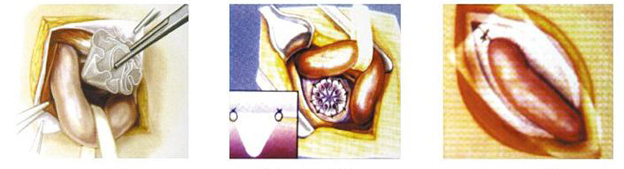 步驟一:置入 步驟二:縫合外瓣 步驟三:固定上片